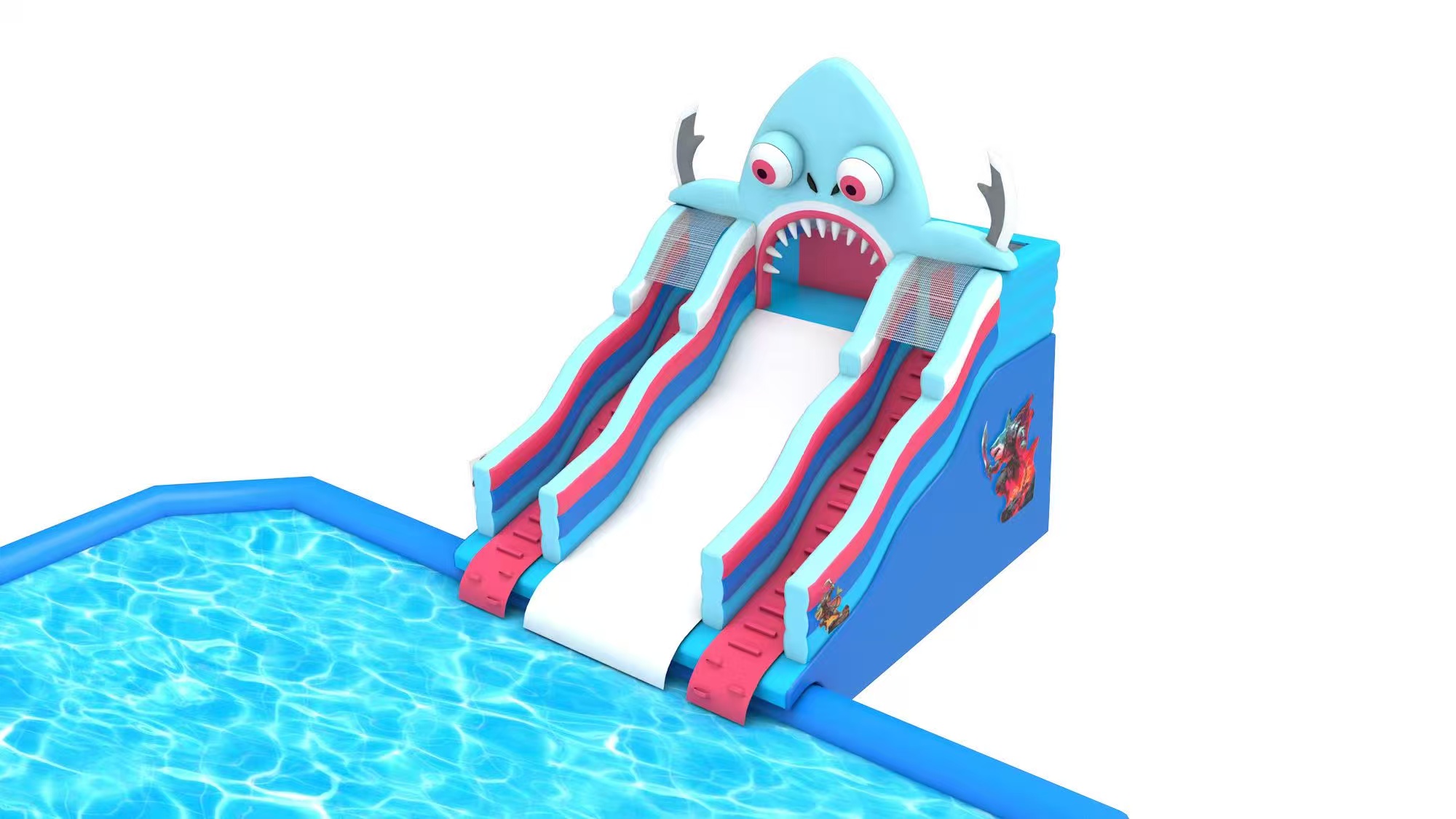 我们的鲨鱼水滑梯在设计之初,就强调了极致的场景灵活性。